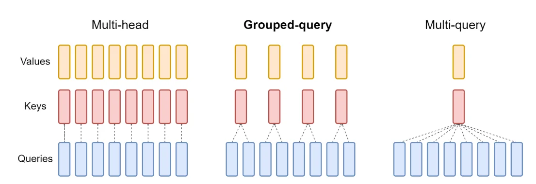 - GQA groups the heads into clusters, each processing a subset of queries independently. This method balances the detailed focus of traditional multihead attention with the broad approach of MQA, enhancing nuanced input data processing.