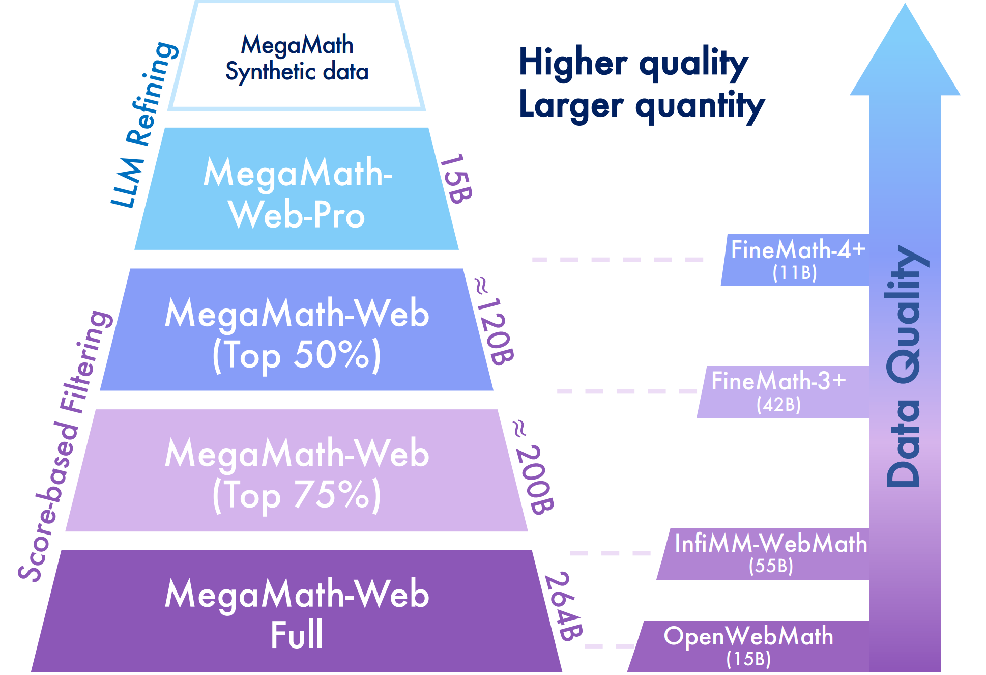 • Revisiting web data: We re-extracted mathematical documents from Common Crawl with math-oriented HTML optimizations, fasttext-based filtering and deduplication, all for acquiring higher-quality data on the Internet.