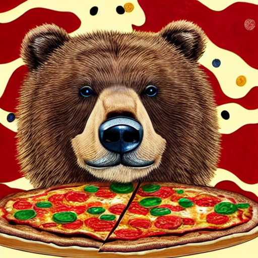 prompt = "A cute brown bear eating a slice of pizza, stunning color scheme, masterpiece, illustration, EasyNegative"