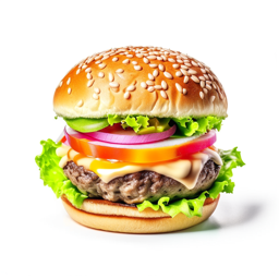 image.save("burger.png")Pass the cheeseburger to the ShapEImg2ImgPipeline to generate a 3D representation of it.
