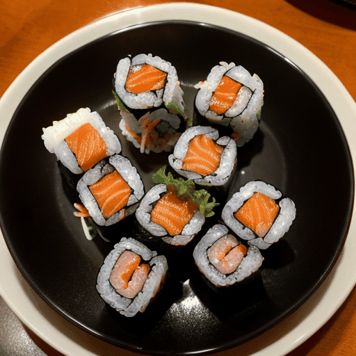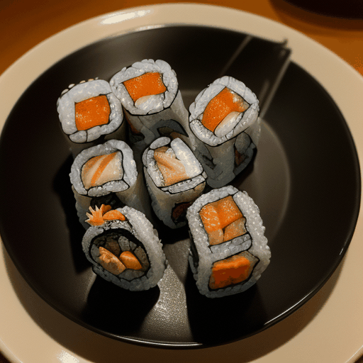 prompt="360 camera shot of a sushi roll in a restaurant",