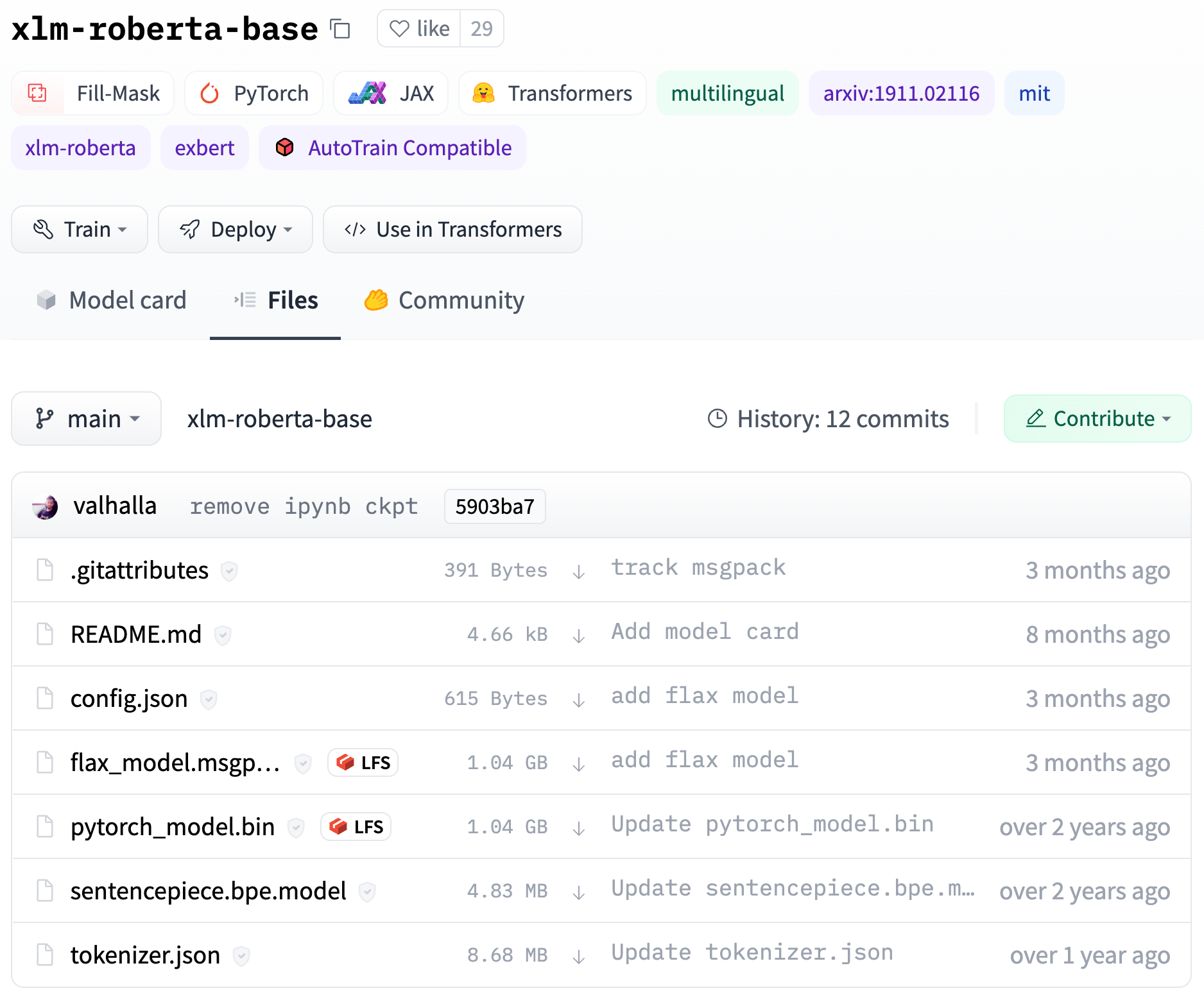 Every time you go through the add-commit-push cycle, the repo will keep track of every change you’ve made to your files. The UI allows you to explore the model files and commits and to see the difference (also known as diff) introduced by each commit. To see the history, you can click on the History: X commits link.