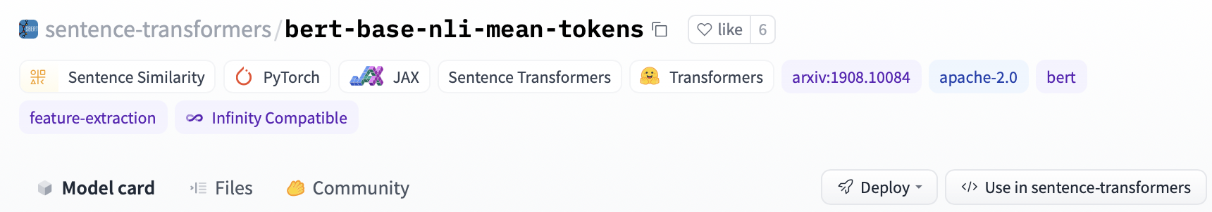 print("Similarity:", util.dot_score(query_embedding, passage_embedding))If you want to see how to load a specific model, you can click Use in sentence-transformers and you will be given a working snippet that you can load it!