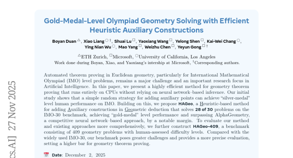 Gold-Medal-Level Olympiad Geometry Solving with Efficient Heuristic Auxiliary Constructions